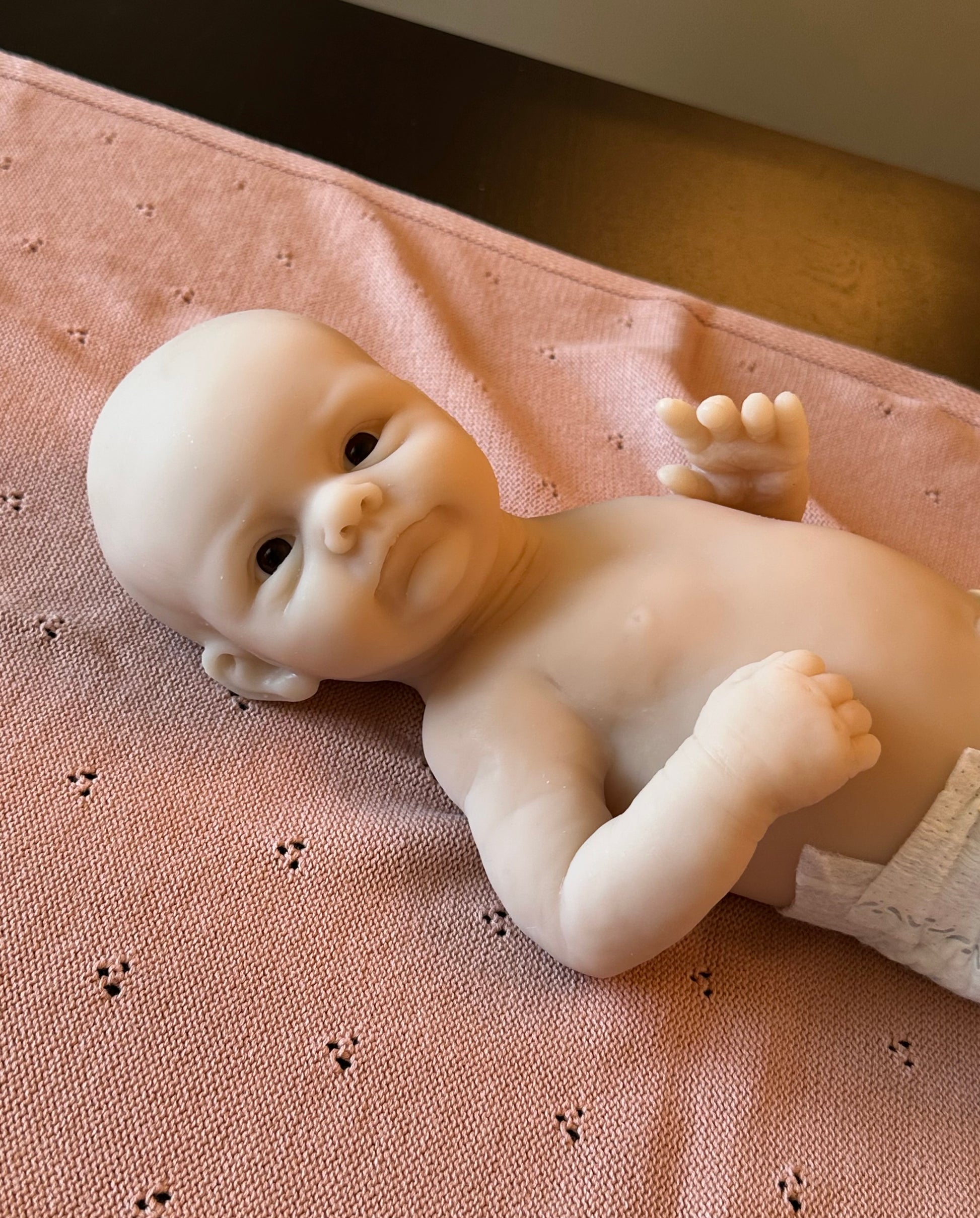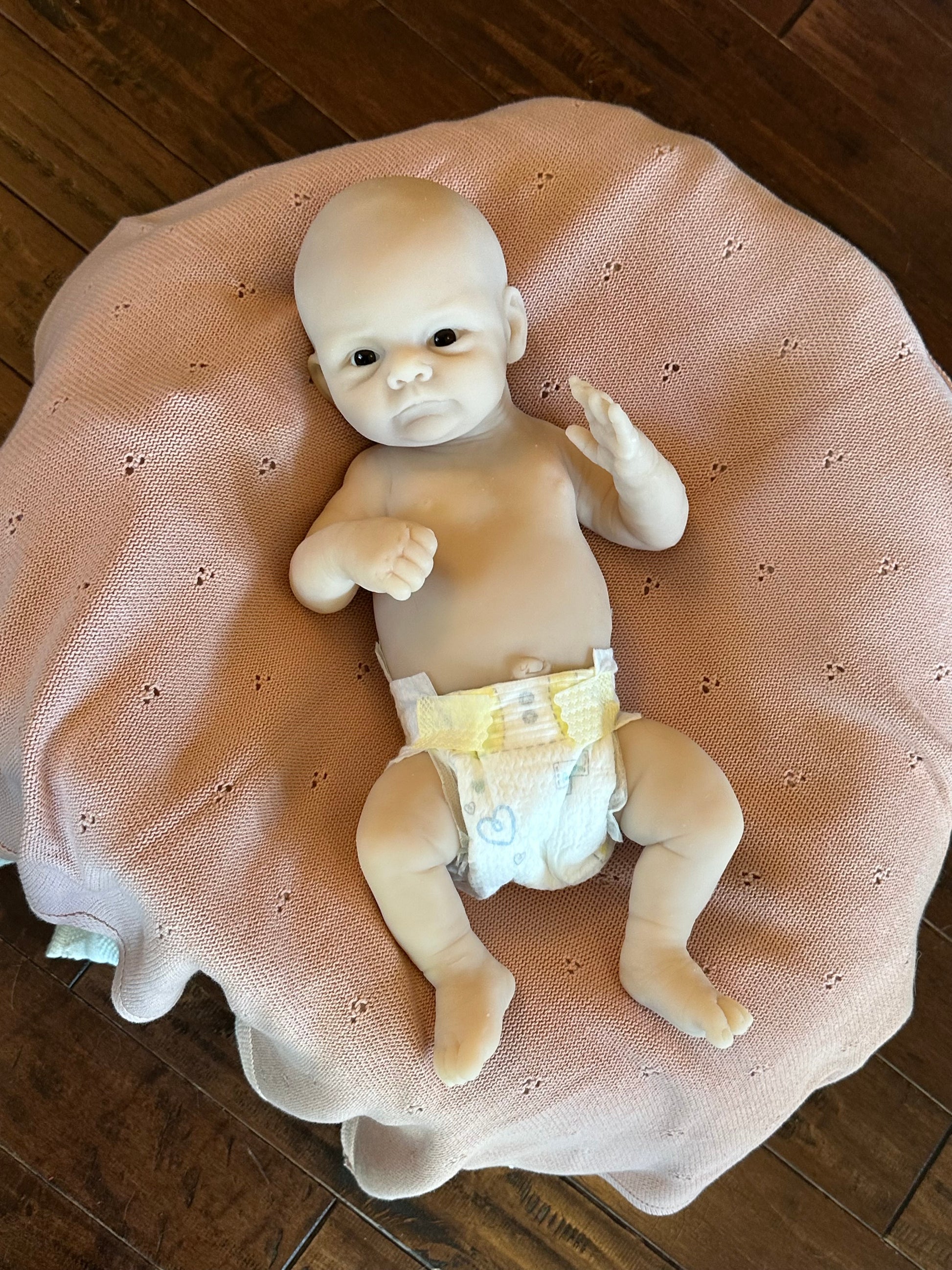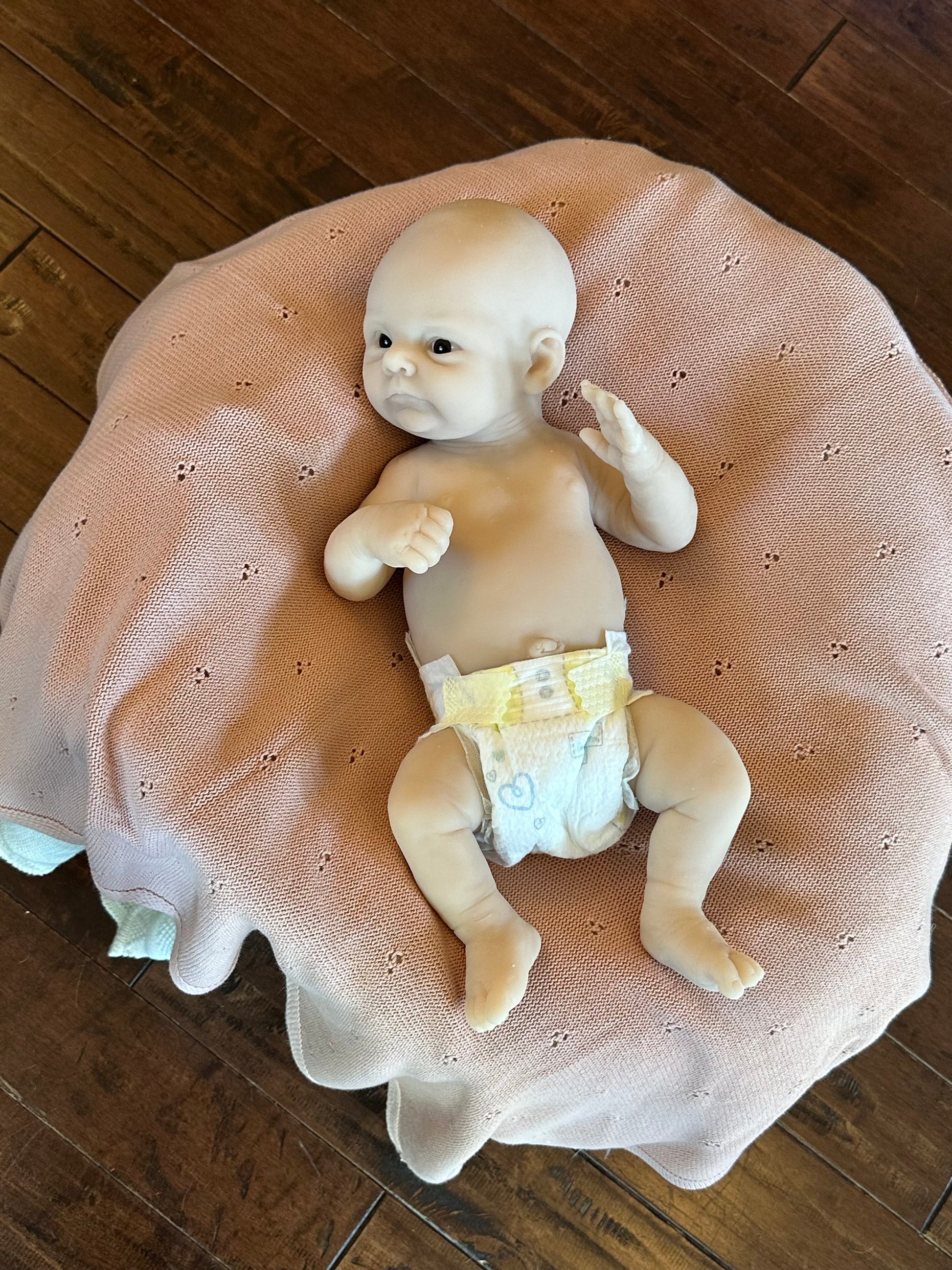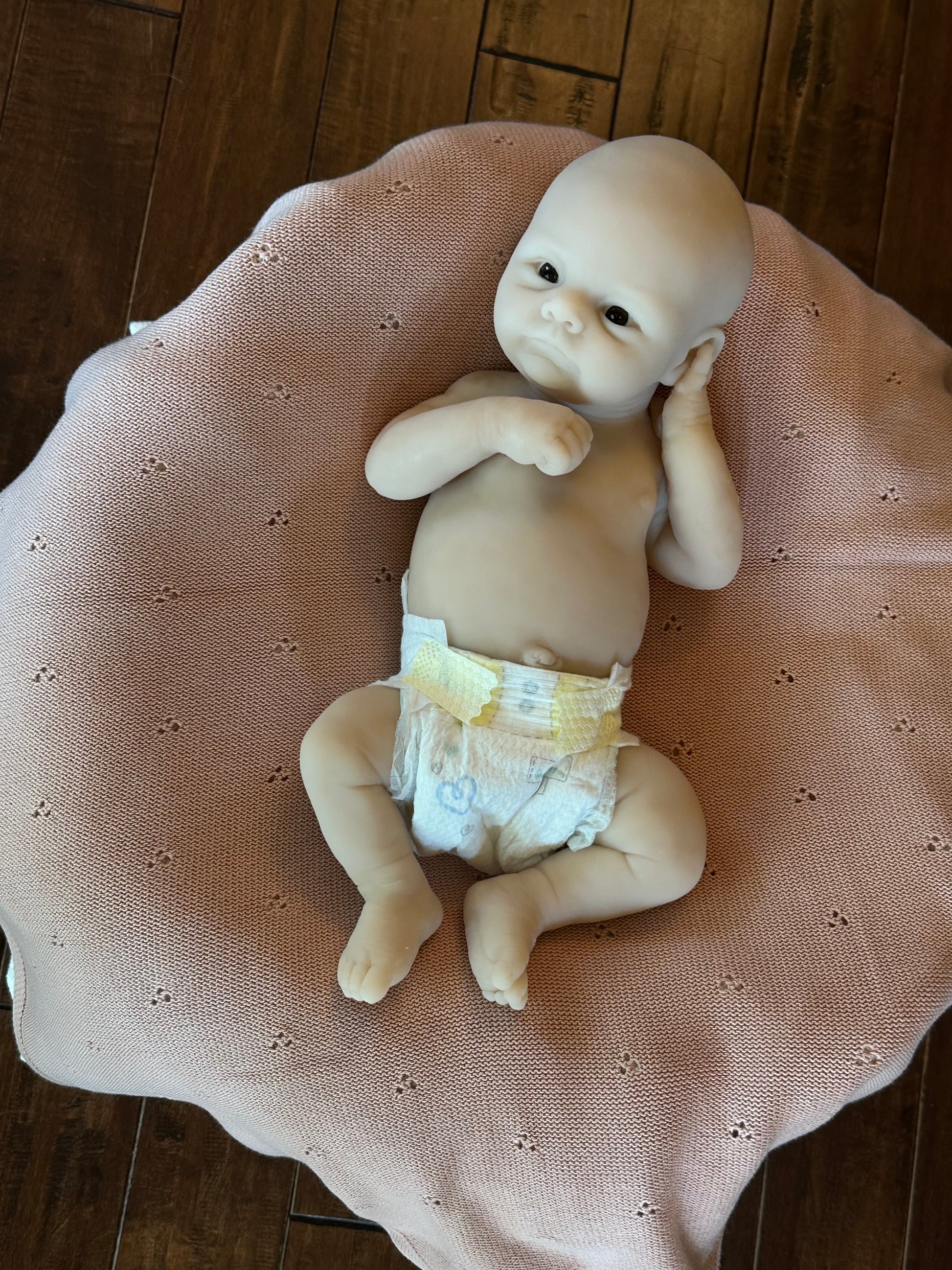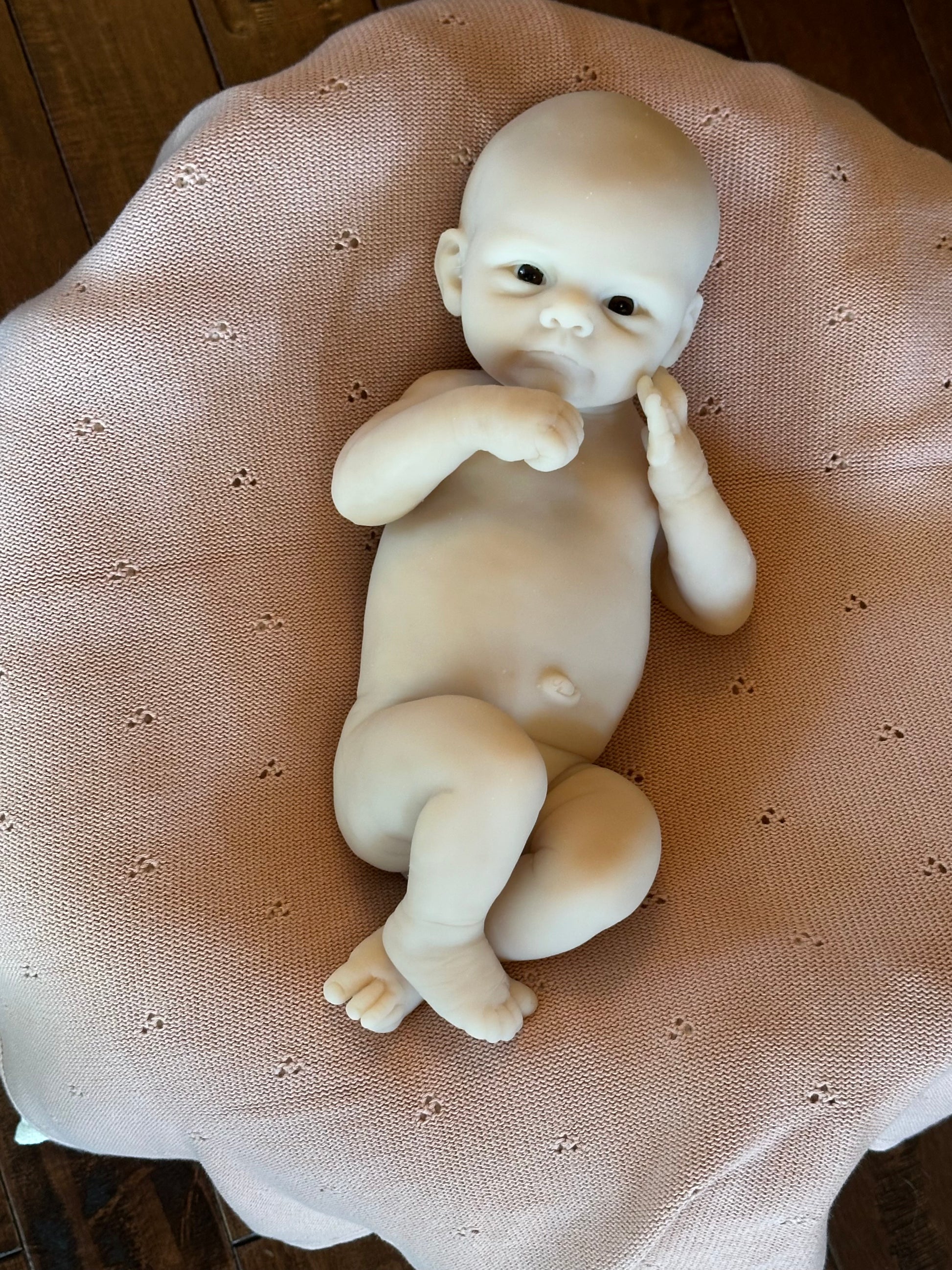 *Note this doll kit comes as a blank, unpainted kit. All photos of finished babies are examples of how the kit could look once finished (painted and rooted), by a silicone artist.