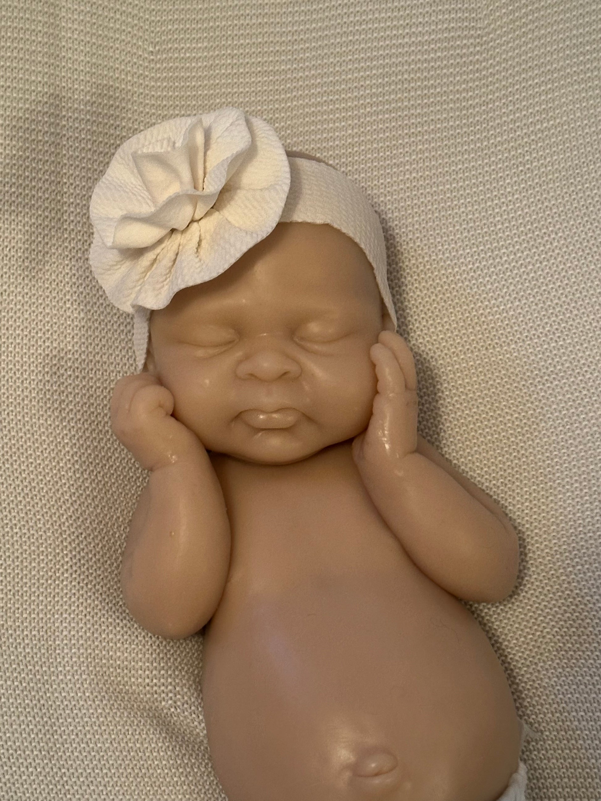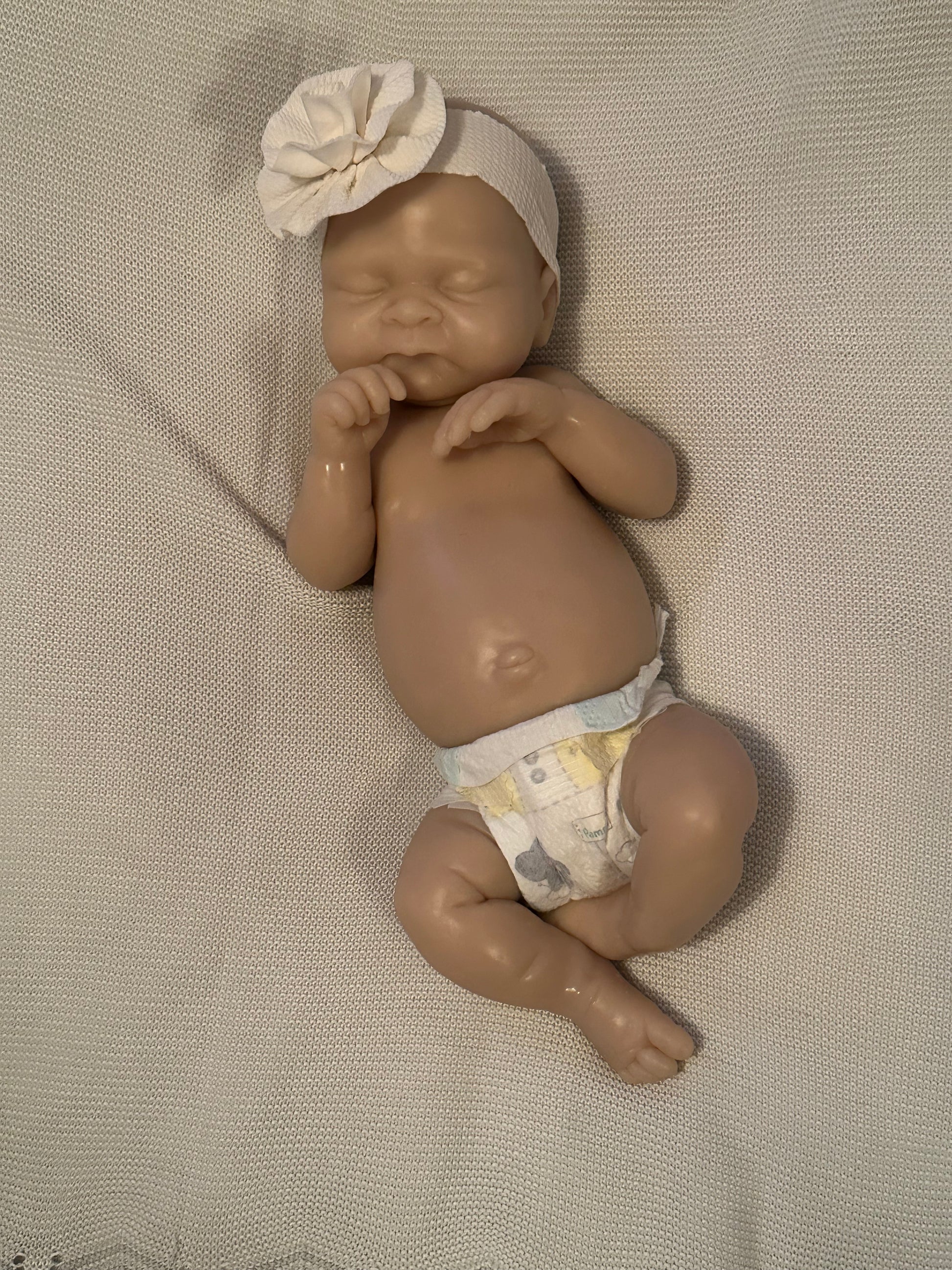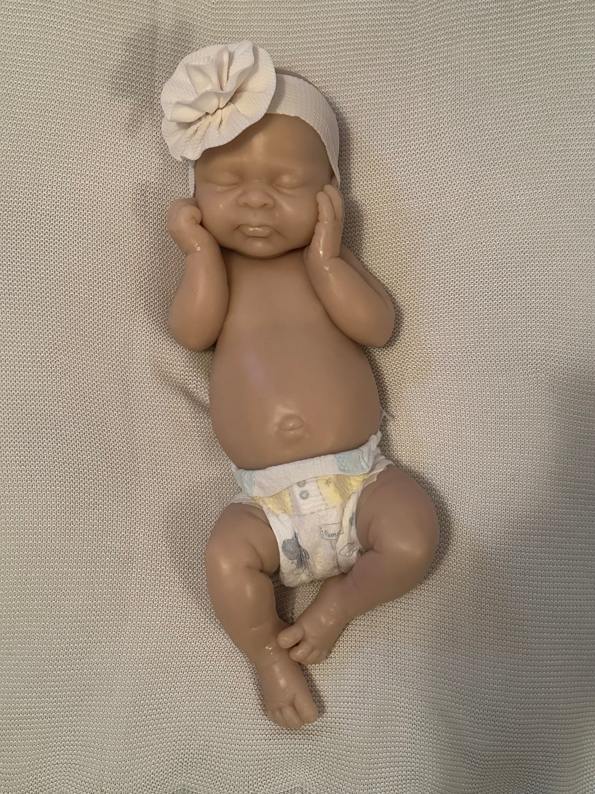 *Note this doll kit comes as a blank, unpainted kit. All photos of finished babies are examples of how the kit could look once finished (painted and rooted), by a silicone artist.