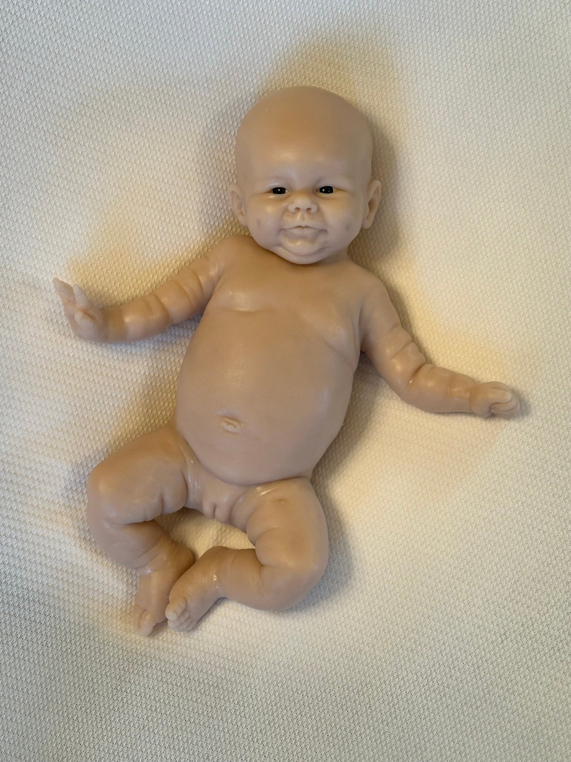 *Note this doll kit comes as a blank, unpainted kit. Any photos of a finished baby are examples of how the kit could look once finished (painted and rooted), by a silicone artist.